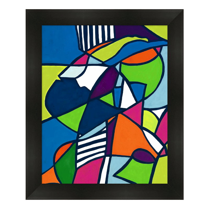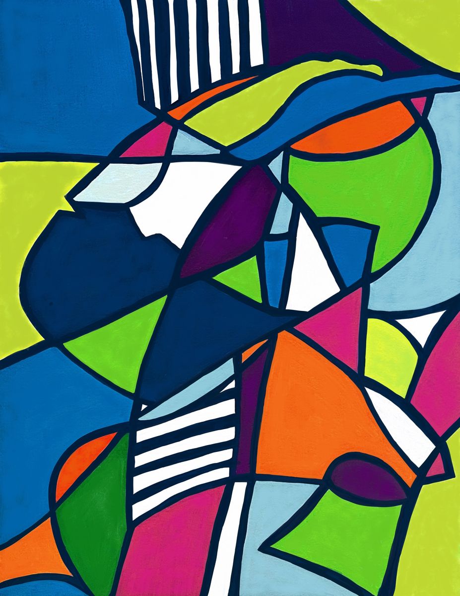 Stripes in Navy is a study in color balance and restraint. After working with black line work in many pieces, this one posed a new question: what happens when the structure is drawn in navy instead?